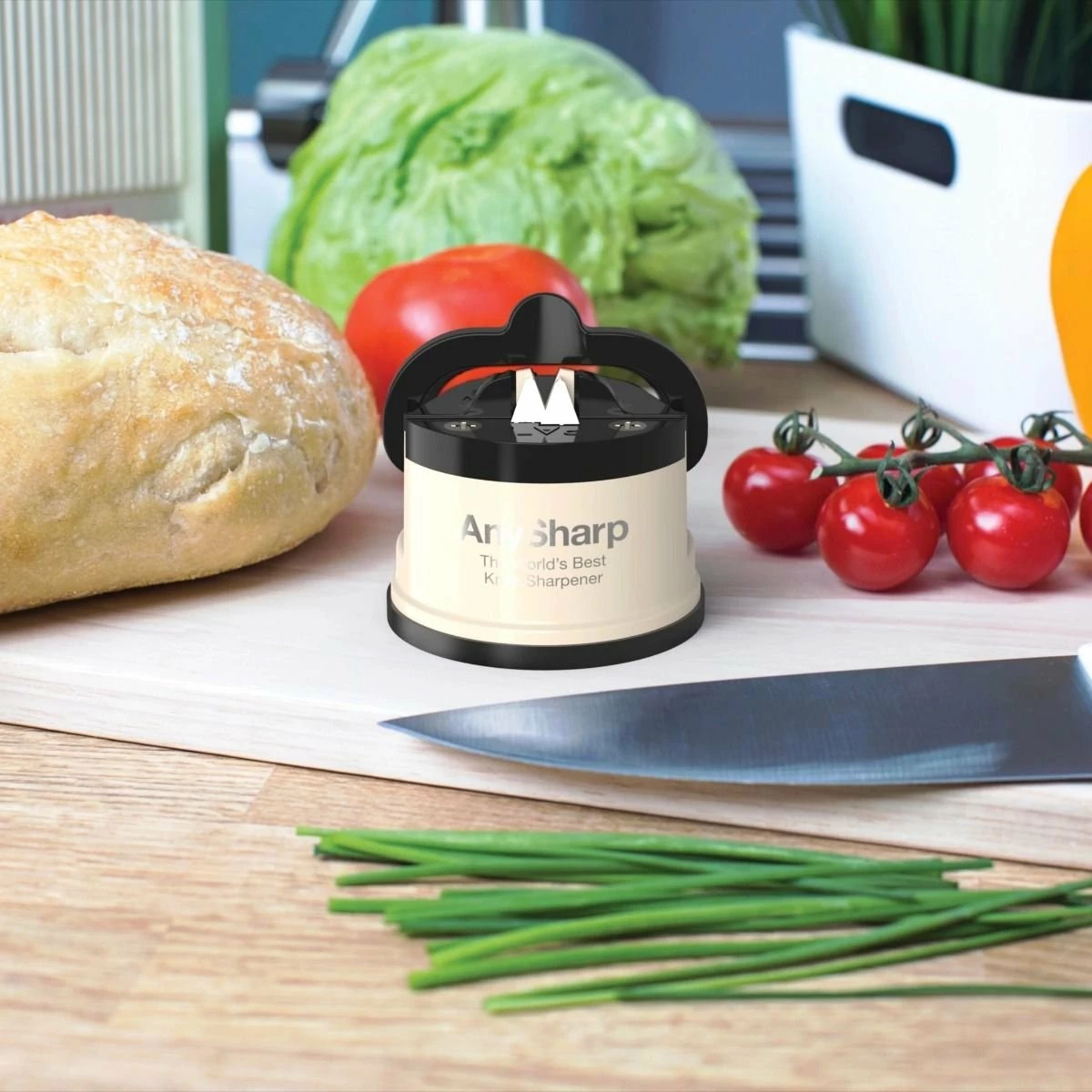With its compact size (2.48″ diameter x 2.76″ height), AnySharp can be easily tidied away in a drawer, cupboard, or tool box when not needed.