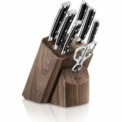 This set includes the two powerhouses of kitchen cutlery, a 3.5″ paring knife and an 8″ chef’s knife. These 2 pieces fit into the luxuriously handcrafted solid walnut wood block adorned with Thomas Keller’s signature, a statement piece for your countertop that will convey your commitment to expert, efficient meal preparation and sophisticated style. Use this set as a starter set for a first time apartment dweller, or supplement your current knife set with these two powerful blades. The true pinnacle of tried-and-tested professional cutlery design, the Cangshan Cutlery Thomas Keller Signature Collection allows the home chef to follow the example of the professionals in the never-ending pursuit of culinary excellence.