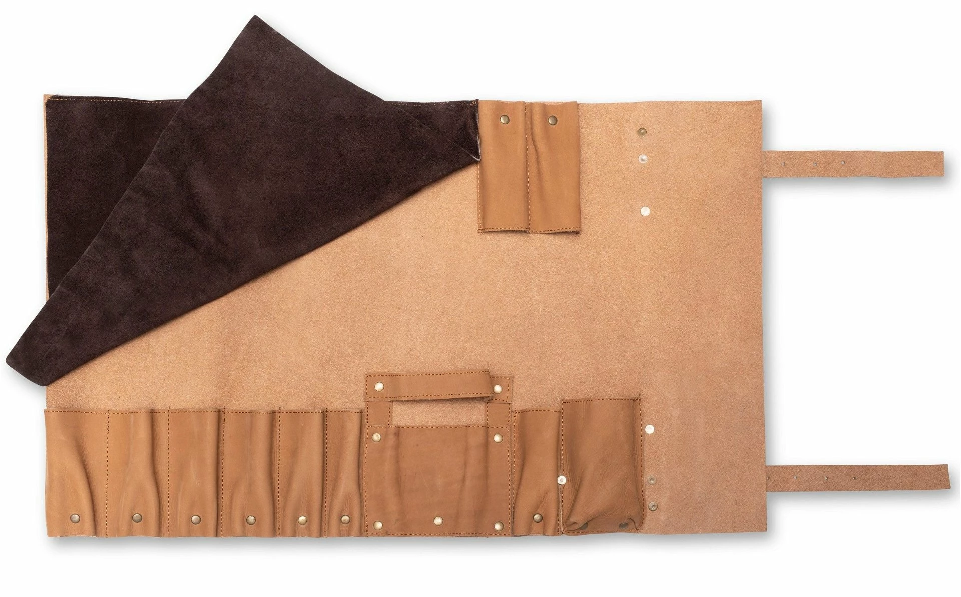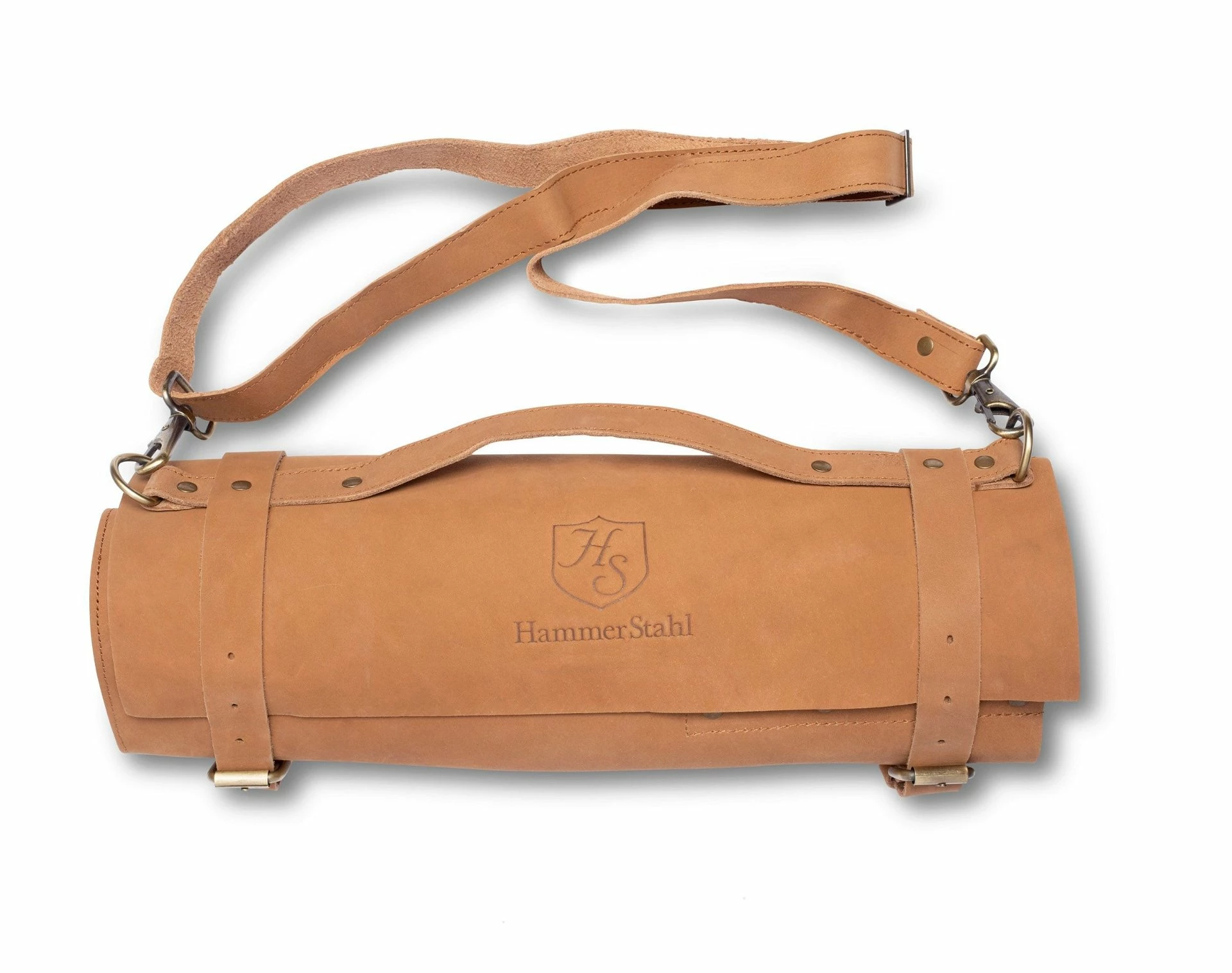 The Hammer Stahl 6-Piece Barbecue Knife Set includes an engraved leather knife roll for storing the 5 knives in the set. Easily & safely transport your knives from the kitchen to your outdoor prep area, your next tailgate party or competition barbecue event. The knife roll is also perfect to keep your knives designated specifically for your barbecuing separate from your other everyday knives to help maintain the sharp edge needed.