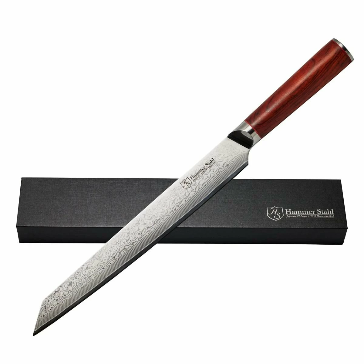 Hammer Stahl Damascus Series Cutlery – 10″ Slicer Features: