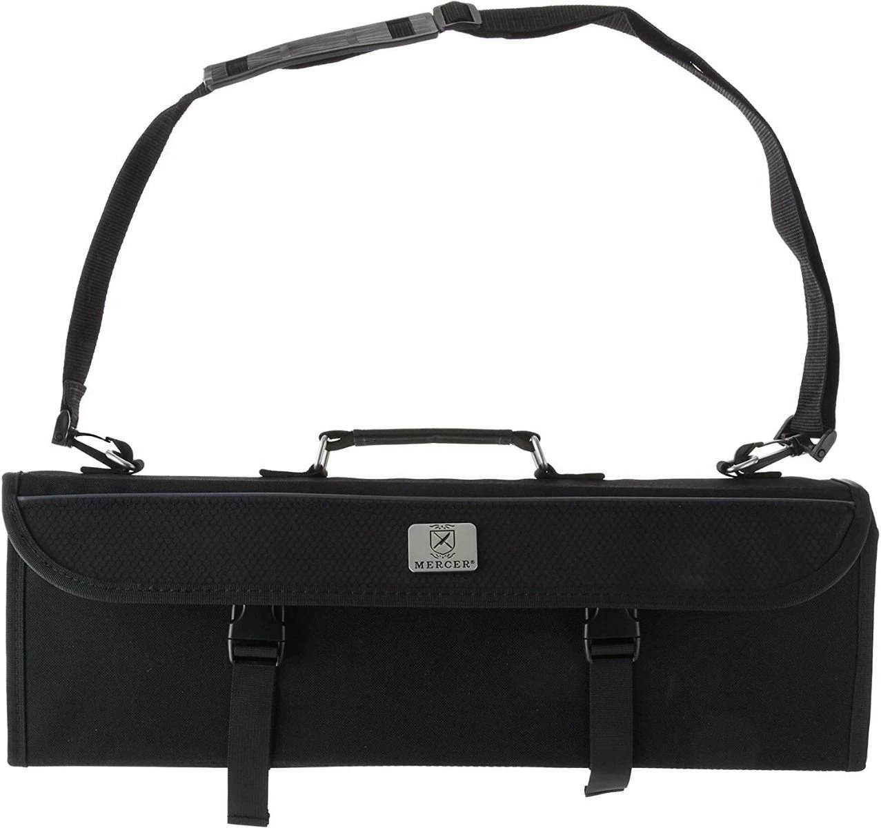 To keep your knives in good condition, there is a 10” honing steel, to keep your blades in good condition between sharpenings. To make transporting your knives easy, the set includes a 10-Pocket Knife Roll that is made from heavy-duty nylon. This bag has an adjustable strap and has space for knives of multiple sizes.