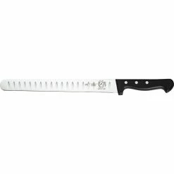 If you are building a well-balanced cutlery collection, a Slicer with a Granton Edge is a must-have. The Mercer Renaissance 11” Slicer with Granton Edge is ideal because of its superior construction and the dependability of the Mercer brand. At 11” long, this slicer is great for serving large cuts of meat like hams and roasts. The Granton edge of the blade introduces air into each slice, which allows you to cut more easily without any food getting stuck tot he blade. As part of the Mercer Renaissance collection, the 11” slicer is made from a single piece of high-carbon stainless steel. It features a full-tang that gives the blade superior balance. The handle of the blade is ergonomically designed for easier, more comfortable use. Why settle for average slicers when the Mercer Renaissance 11” Granton Edge Slicer is available? Get yours today and complete your cutlery collection.