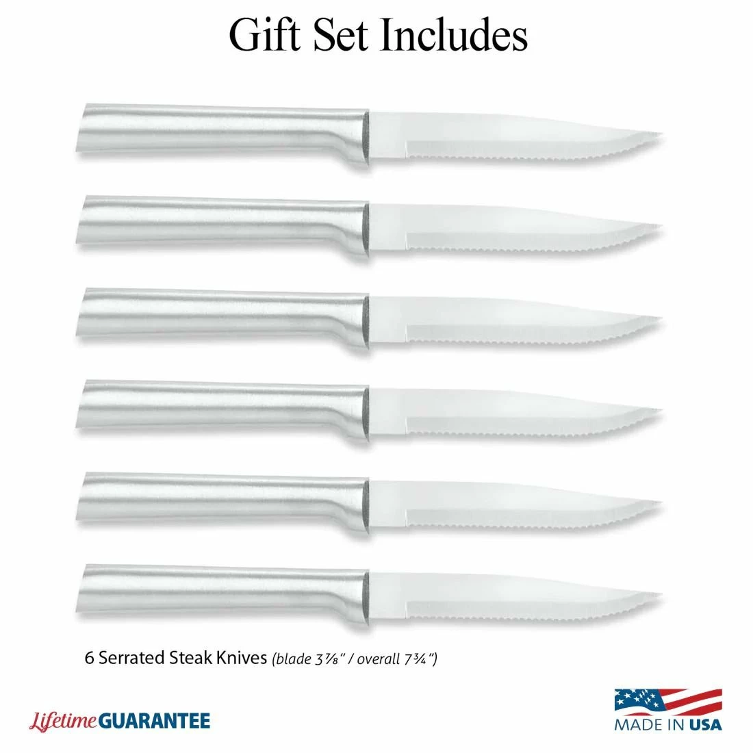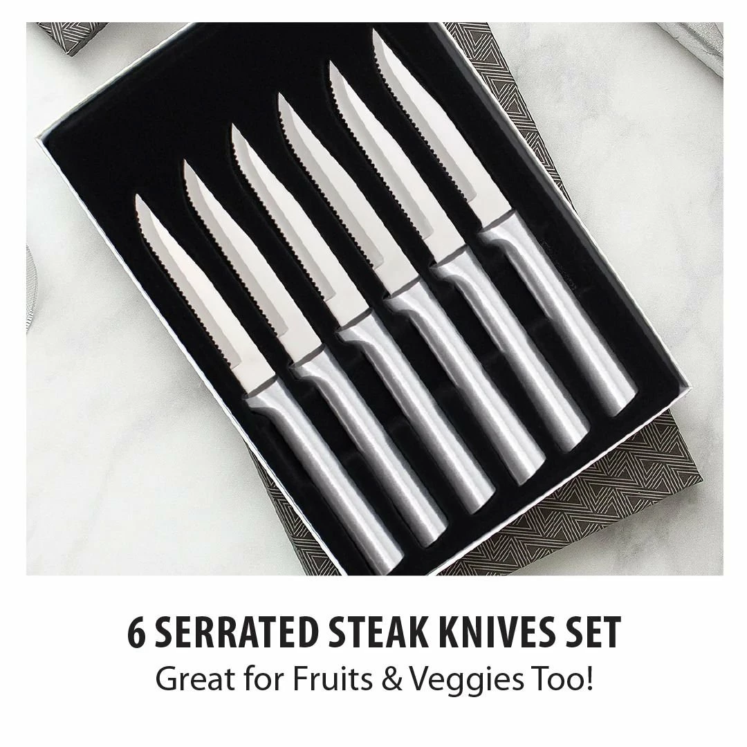 Rada Cutlery 6-Piece Serrated Steak Knife Set – Silver Features: