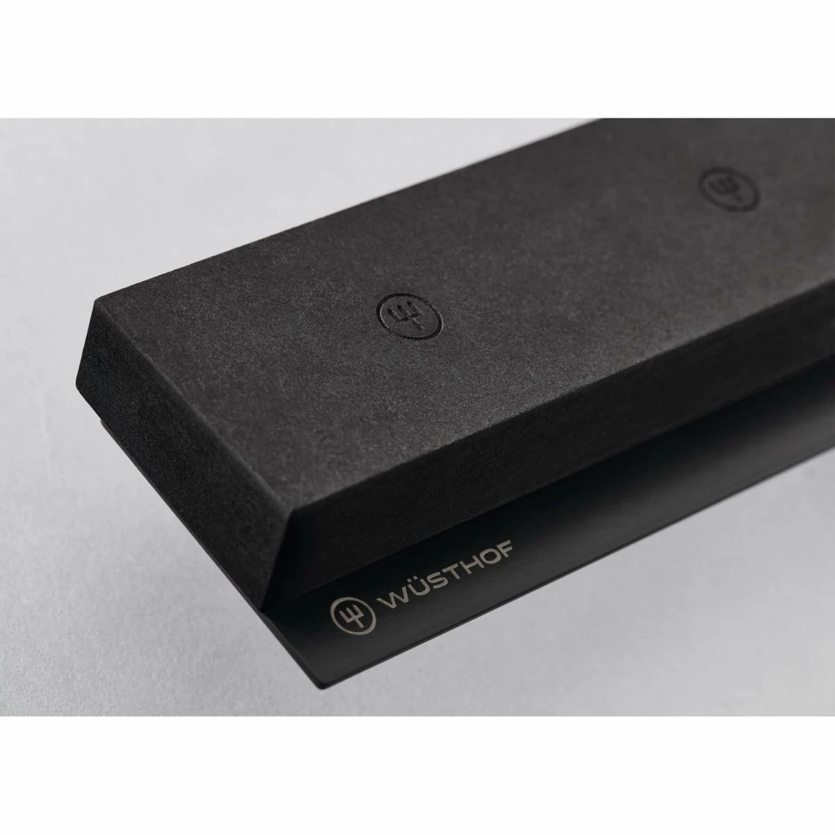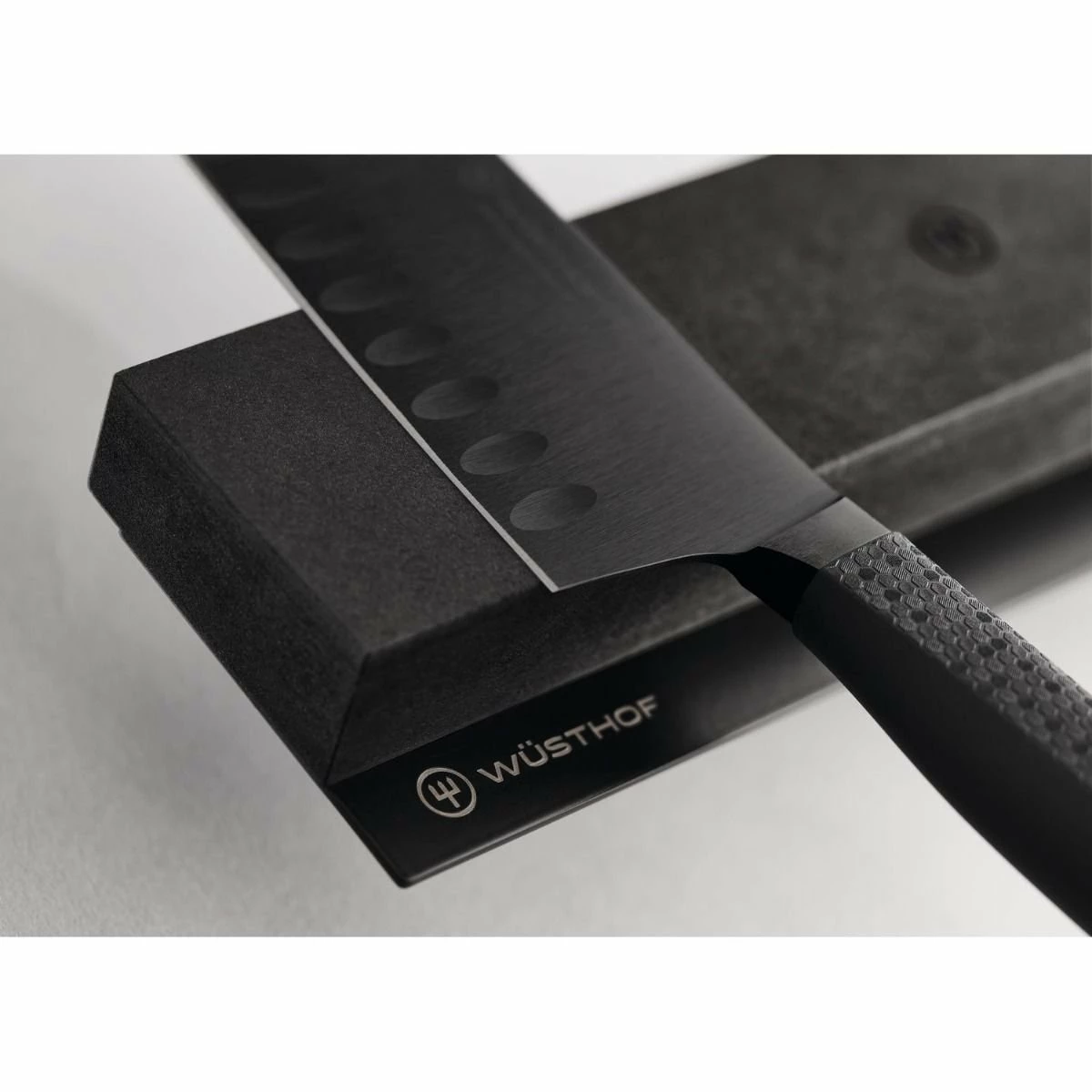 The 15″ Magnetic Bar from Wusthof provides an updated and flawless approach to knife storage. This simple storage solution hangs on the wall to keep your knives always within reach while its diamond-like carbon finish makes it easy to match with your black appliances, decor, and more. Worried about storing knives safely? The magnetic bar holds knives securely and unlike storing knives in a drawer, the open display of a magnetic bar makes it easier to avoid accidents when reaching for the blades. The open-air storage it provides also avoids blade damage from regular sheathing and unsheathing. To maintain its appearance, simply keep it clean with a dry or damp cloth. Included are screws and anchors to mount it on your kitchen wall and show your Wusthof knife collection to your guests. Display your cutlery collection with pride with the 15″ Magnetic Bar from Wusthof’s Performer Collection today!